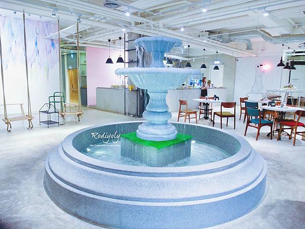 居然在咖啡廳裡還有這樣美翻滴噴水池造景!