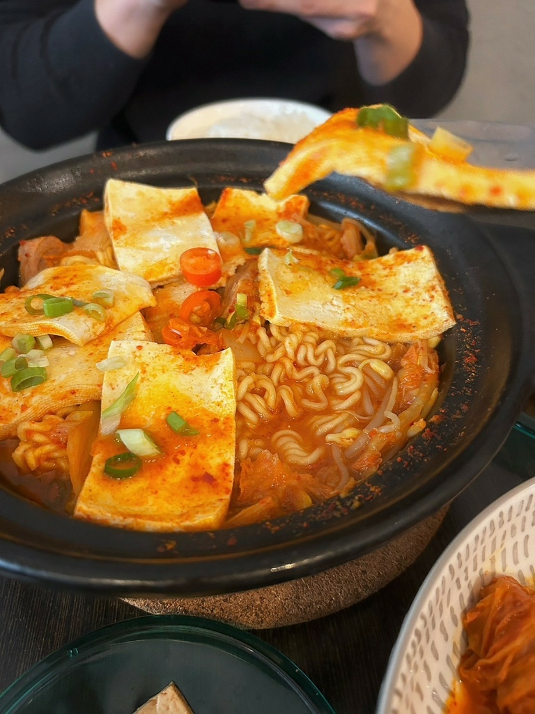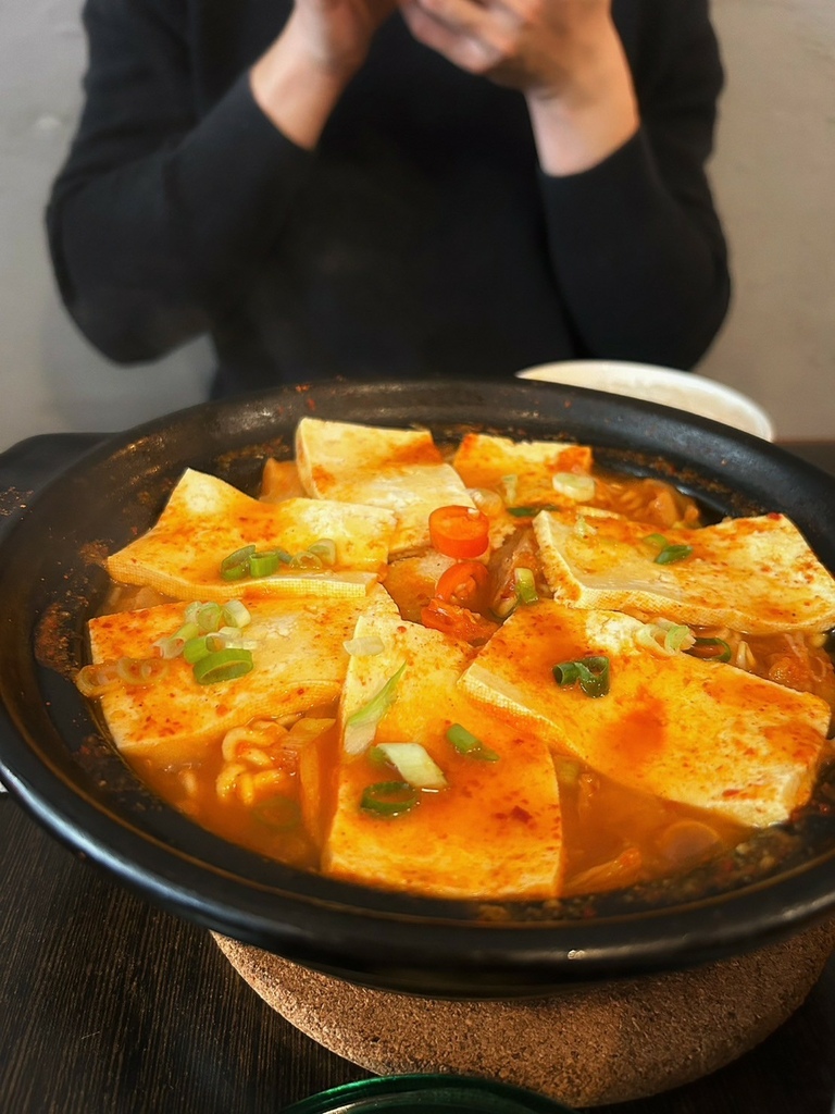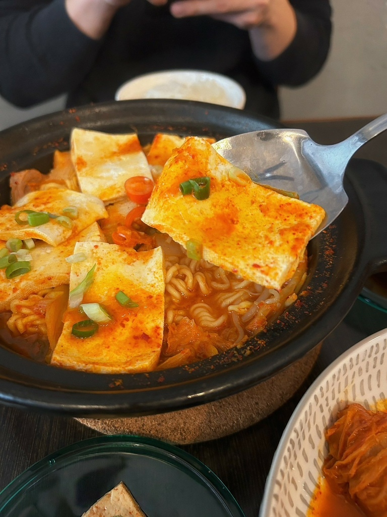 說實話一開始覺得泡菜豆腐鍋420元真的是小貴捏~裡頭確實除了豆腐肉片也沒有什麼特別的料~但這個湯頭真的要來喝才知道!真的不是一般在外頭吃的小火鍋那樣的泡菜味,可說是非常獨特湯頭非常的順口,完全不會過鹹,而加點的韓國拉麵就更稀奇了,為什麼覺得龜尾家的泡麵特Q特好吃(?)莫非只有韓國人才真正會煮韓國拉麵嗎?